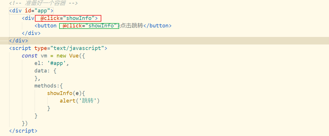 <a href="https://www.baidu.com/" @click.prevent="showInfo">点击跳转</a> | |