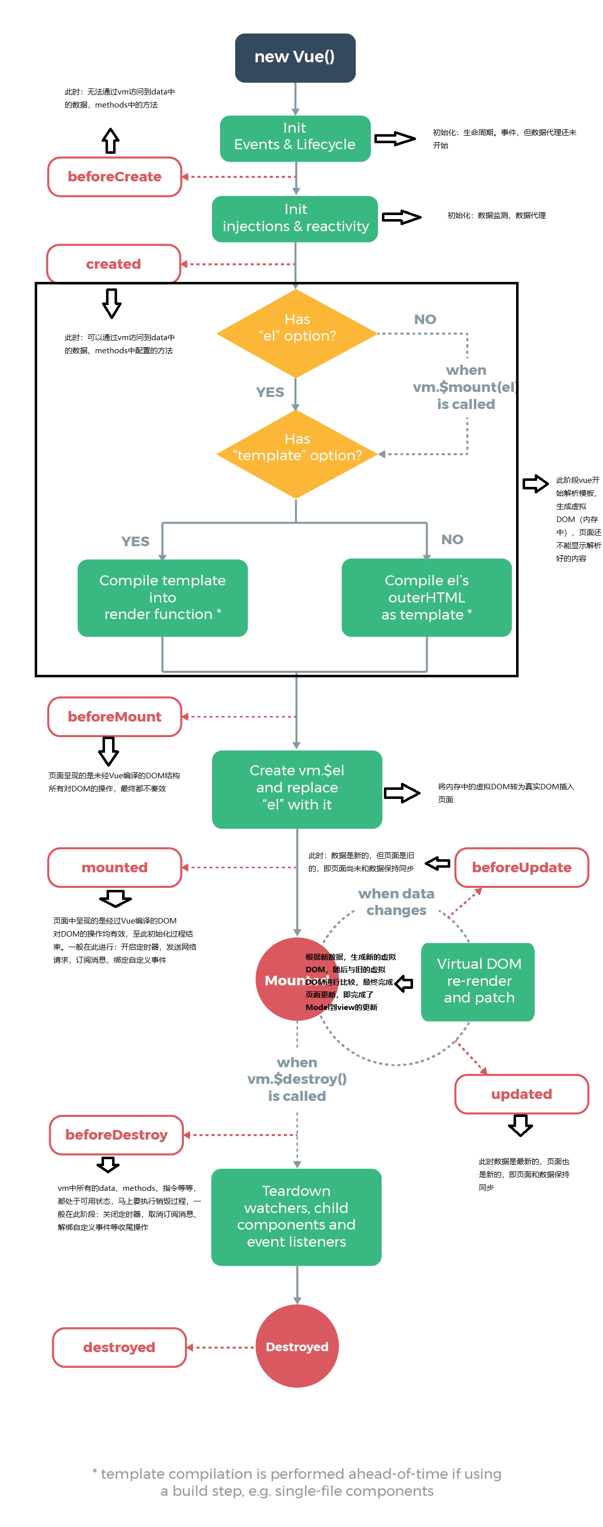 调用 vm.$destroy (); 虽然页面数据还在,但是再点击修改等操作,页面不发生变化。