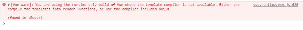 在 main.js 中,创建 new Vue 时,按照以往的写法会报错:由于 vue.runtime.xxx.js 没有模板解析器,所以不能使用 template 配置项,需要使用 render 函数接收到的 createElement 函数去指定具体内容。
