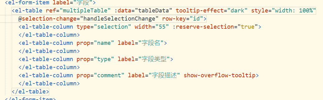 <el-table-column prop="comment" label="字段描述" show-overflow-tooltip> | |