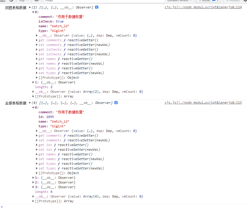 最后在请求到两次数据,对数据进行操作,一个数据为请求的详细数据,里面包含需要回显的表格数据,另一个数据为表格的全部数据,如图。